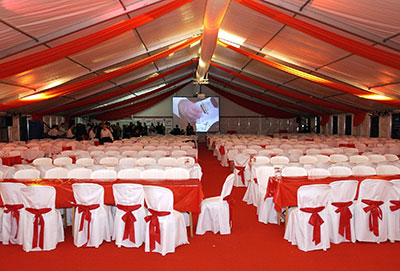 Party atmosphere is at its best for our international show band, various comedy acts and fantastic walk acts. The show's main stage is shown on several giant screens and recorded on video.