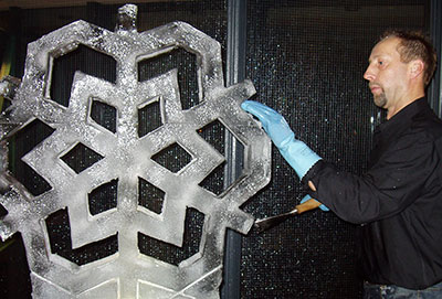 Fire & Ice is the motto here, in which we play with the elements and «light a fire». Several ice figures like giant snowflakes and the customer's logo are created in front of the guests and then illuminated.
